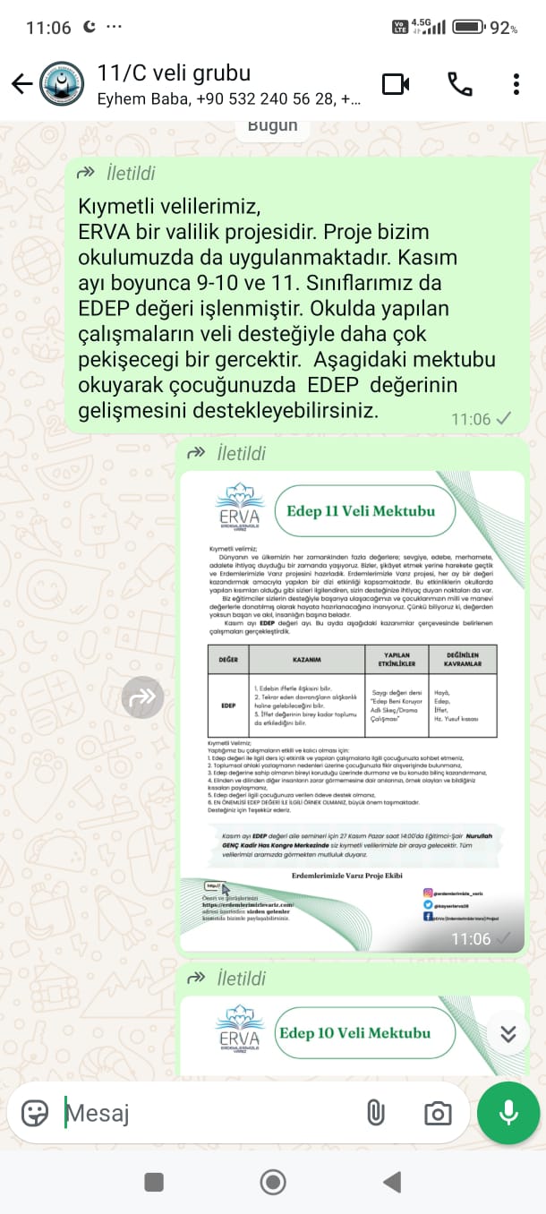 Ömer Serpil Özberber Anadolu İmam Hatip LisesiEdep değeri ders içi işleyişinin ardından velilerimize mektuplarımızı paylaştık.